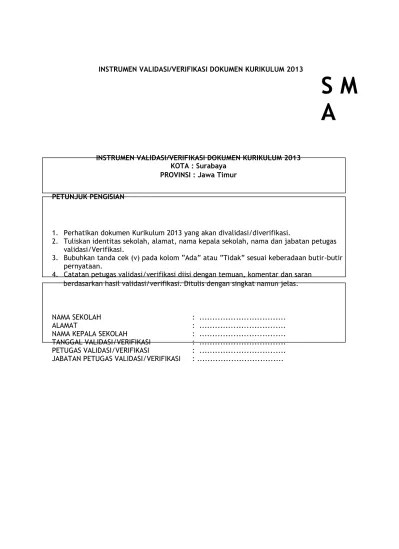 Instrumen validasi/verifikasi dokumen 1 ktsp cover/halaman judul lembar pengesahan daftar isi bab i pendahuluan bab ii struktur dan muatan kurikulum tingkat .